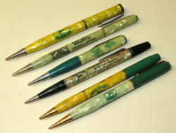 beautiful green marble base, brass plaque is clean and nice, correct pens, 14"x6.5", great piece