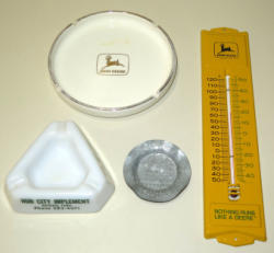 #919 - Lot of JD Dealer Advertising Items--Trays, Thermometers & more