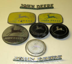 #893 - Box Lot of JD Tractor emblems and Steering wheel caps