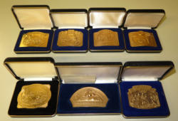 #900 - (7x) JD Gold Belt Buckles--several Tractor ones
