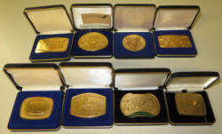 #901 - (8x) JD Gold Belt Buckles--Logos & Others--includes the 1st one