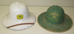 #910 - (2x) JD Vintage Hats--Green Straw hat & white pith helmet