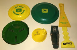 #925 - Box Lot of JD 2-leg Deer Items--Frisbees, Pliers holder, Scrapers & more
