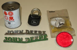 #939 - Lot of JD Items--Padlock, Bicycle Reflectors, grill emblem & more