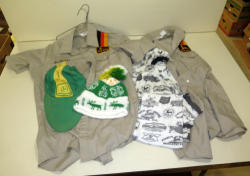 #947 - Lot of JD Items--Cap, Gloves, Suspenders, Battery Clock & more