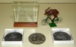 #943 - Lot of Medallions, Dealer Awards & Deer on Bicycle