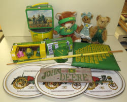 #957 - Large box lot of New JD Items--Lunch boxes, bucket, Dolls, Teddy Bear & more