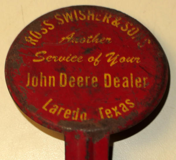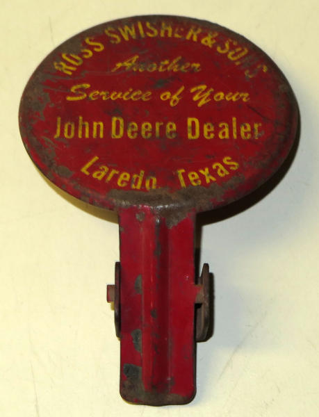 has quite abit of wear, but first one of these I have seen with JD advertising, 2.75" across