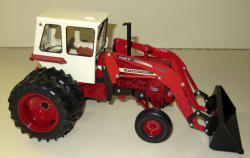 Ertl Tractor customized with duals, 3pt, rops, & lights; Ertl 640 loader added w/ custom hoses too, looks good
