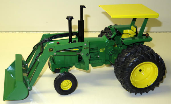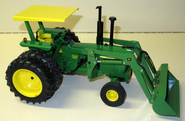 Ertl Tractor customized with duals, 3pt, rops, & lights; Ertl 640 loader added w/ custom hoses too, looks good