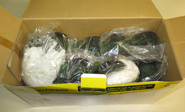 NIB, plastic light up tractors are about 1/32nd scale, might have been out and displayed, box has some wear