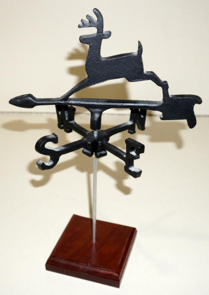 14" tall, metal on wood base, used as a salesman sample for the large vanes in the 1980's