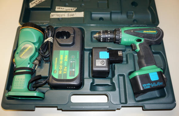 Drill, Light & Charger works, but batteries are bad, pretty clean set, doesn't look like it was hardly used