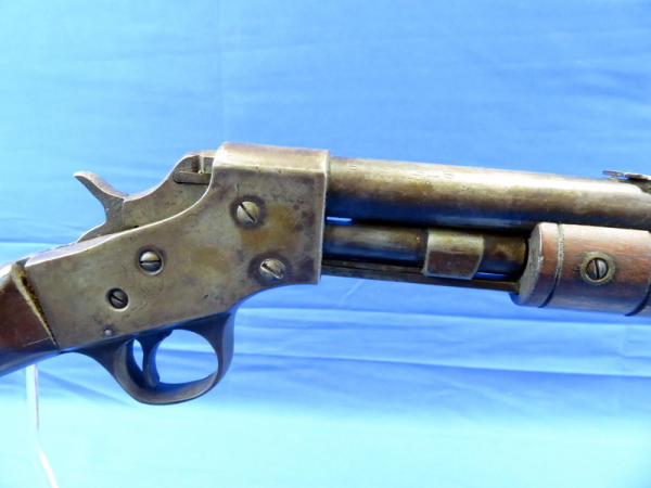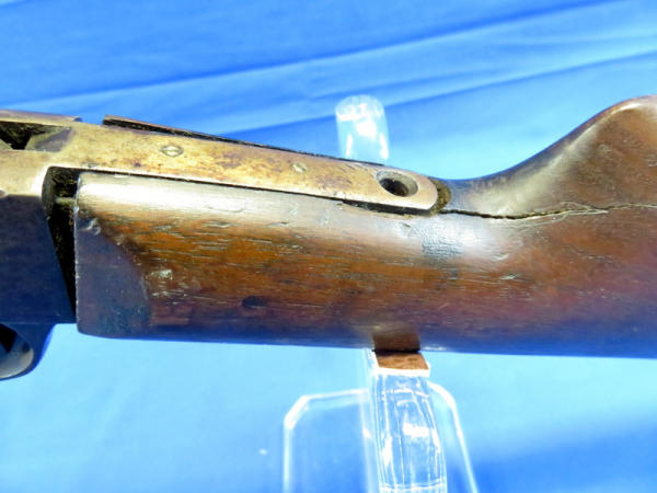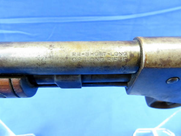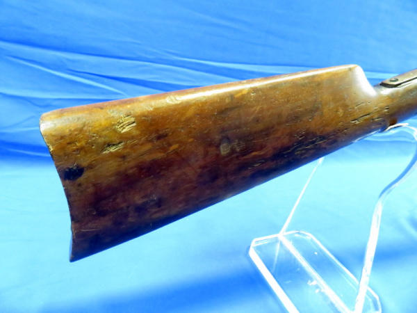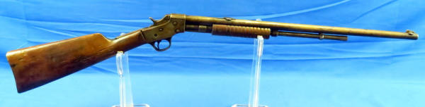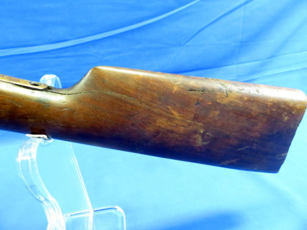 22" BBL; smooth action; missing screw in top tang; crack in stock on top and bottom; tarnish and grime on steel; condition isn't the best but this is a hard little firearm to find and still very collectible! SN#M 839