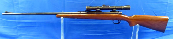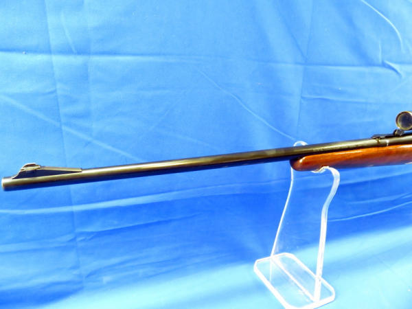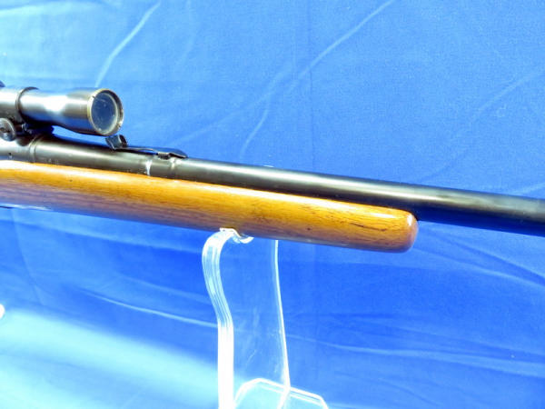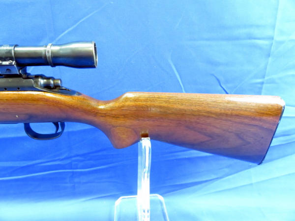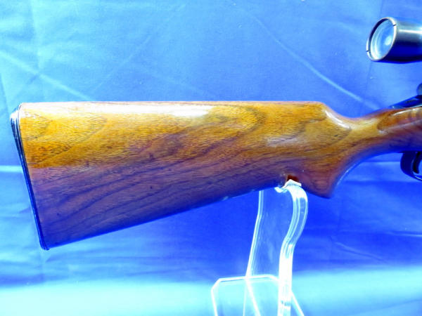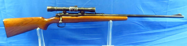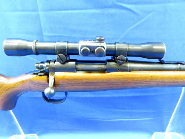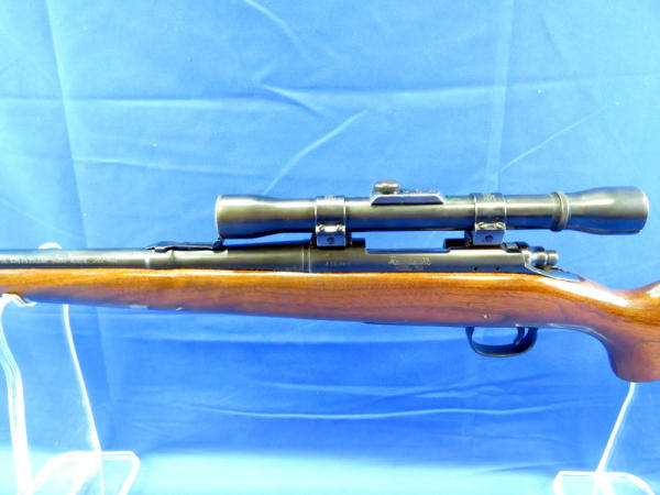 26" BBL; smooth action; some spotting on the bolt; older unmarked scope, possibly Weaver, lenses need cleaning; wood is very nice with good gloss & color; SN#370367