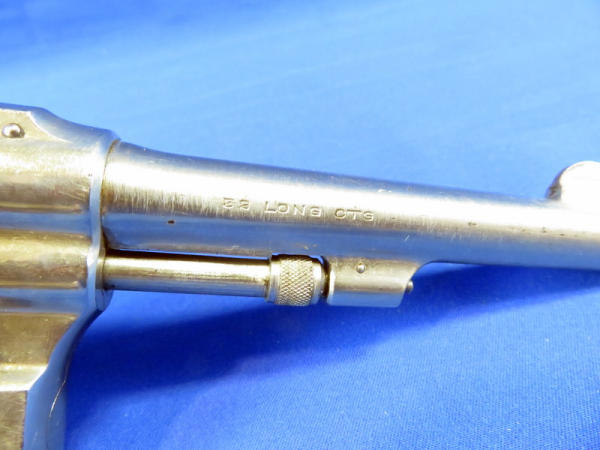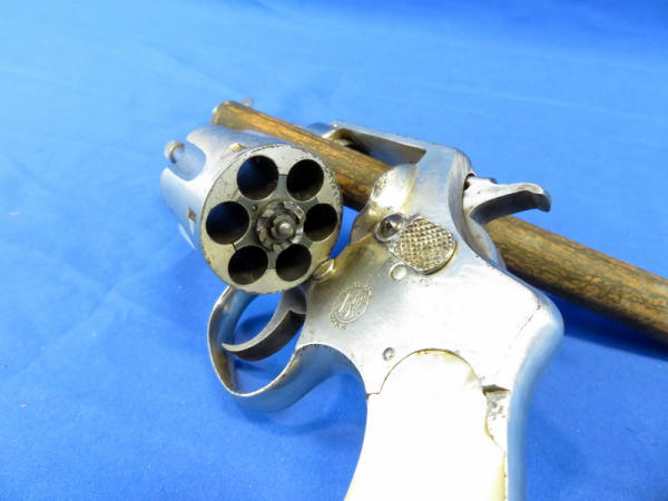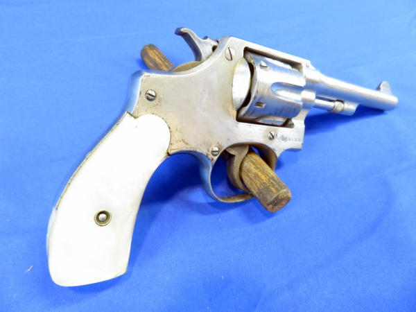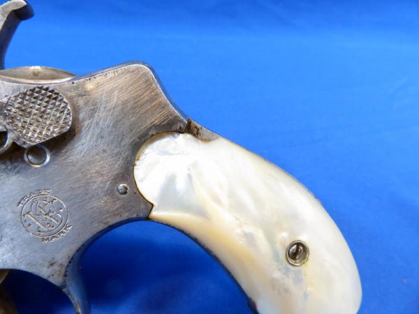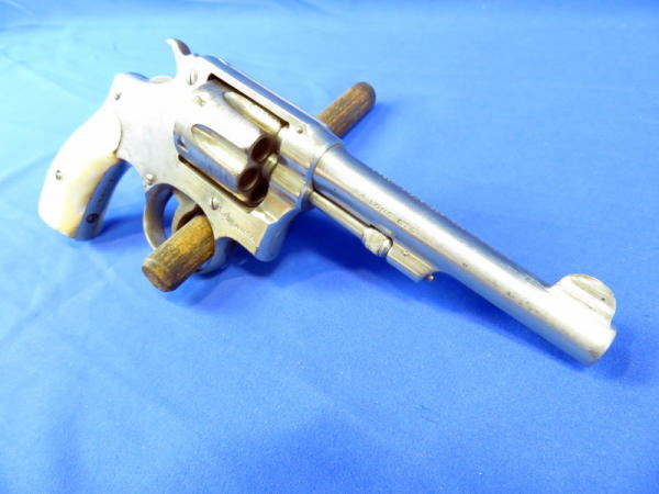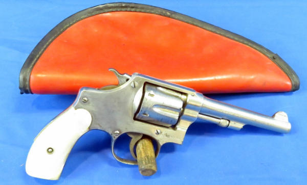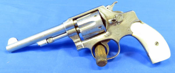 Nickel Finish; 4.25" barrel; smooth action; pearl handle grips; some finish wear; fixed front sight; includes zipper case; SN#475567