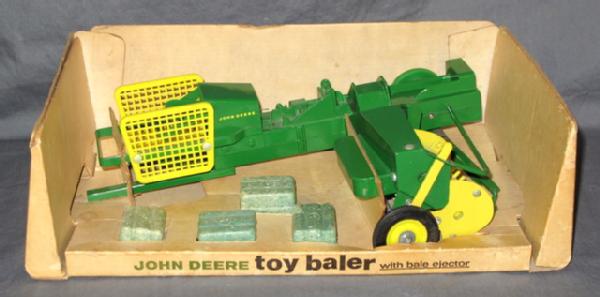 Toy is nice with minor wear, box has a lot of dust staining, but includes bales