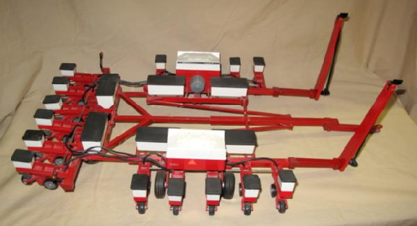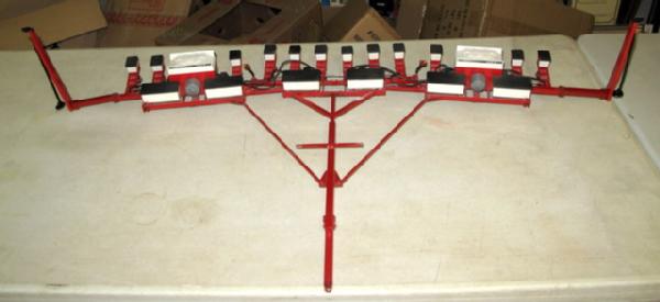 Very sharp all scratch built implement, brass & metal with some Ertl parts, folded measures 29" long, unfolded it is nearly 45" wide! Has a few light chips and could use a dusting, but overall is very sharp