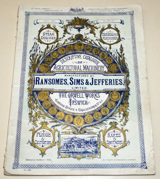 90 pages, full of steam engines, equipment, mowers and much more; some unique stuff being from England; has quite a bit of general wear and soiling; not mint, but a neat piece