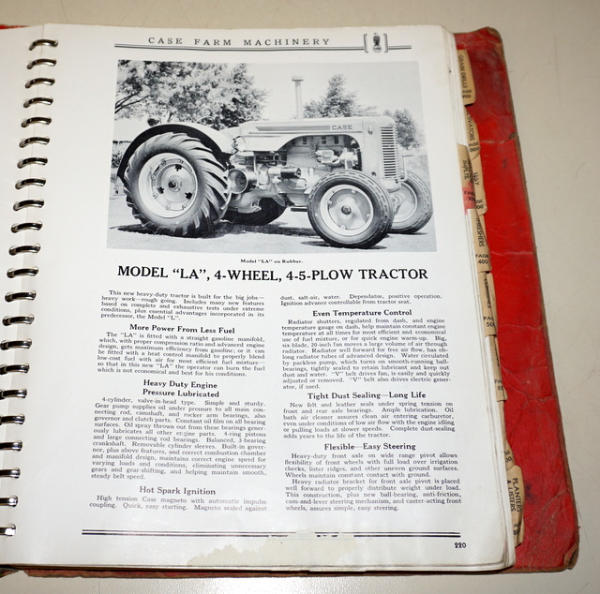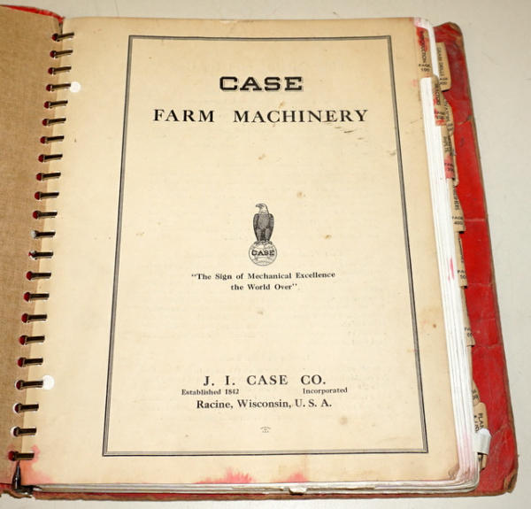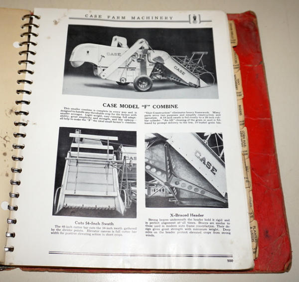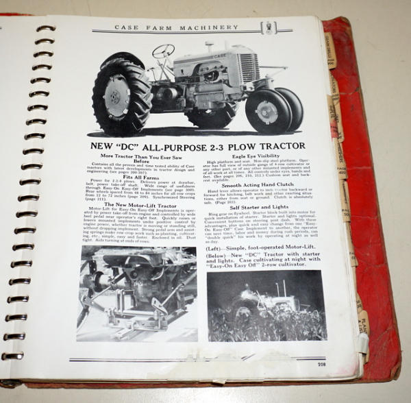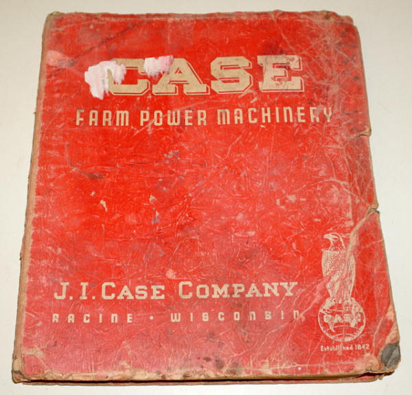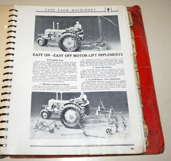 about 1" thick, tractors and lots of info on implements, cover has heavy wear, contents are pretty clean,