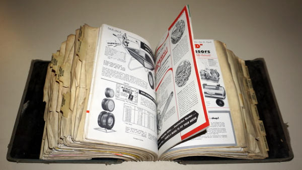 5.5" thick of material! Cover has very heavy wear, contents have general wear