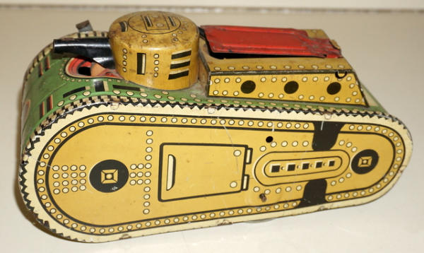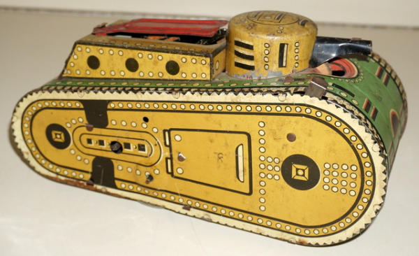 missing the windup key, 10" long, Top side has some wear, sides are nice, I'd call it C7.5 condition