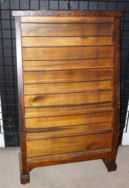 Awesome piece, 52" tall, 32.5" wide, amazing original finish, stenciling down both sides with the early water-transfer leaping deer logo in the center; great original finish that appears to be untouched, an awesome piece for the sign or literature collector!