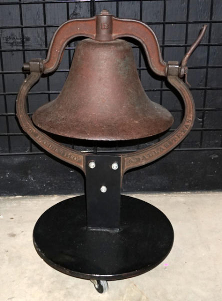 one of the ultimate pieces of JD memorabilia! Great original finish, bell is 16" across at the bottom, yoke is good with no repairs, has the striker, comes on a very well made, solid-steel stand; in 20-years we have sold ONE Bell and it was broken! Could be a once-in-a lifetime chance to acquire one for your collection!
