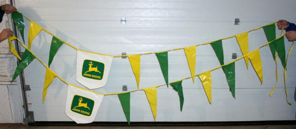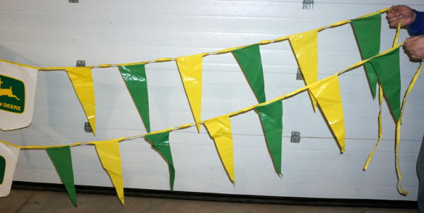 used, but nice, looks to be about 20' long, large 2-leg pennants are all-weather material,