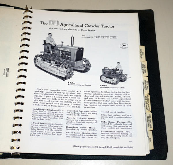 another great dealer sales book, 1010 thru 5010, plus high-Crops, standards, and the 8010 4wd, cover has light wear, contents are clean and nice; includes some supplemental pieces on the power shift transmission