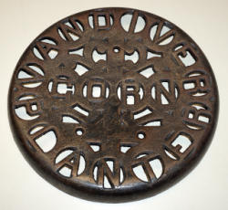 Very nicely cleaned, great lettering, rare & desirable cast iron seat, about 13.5" across