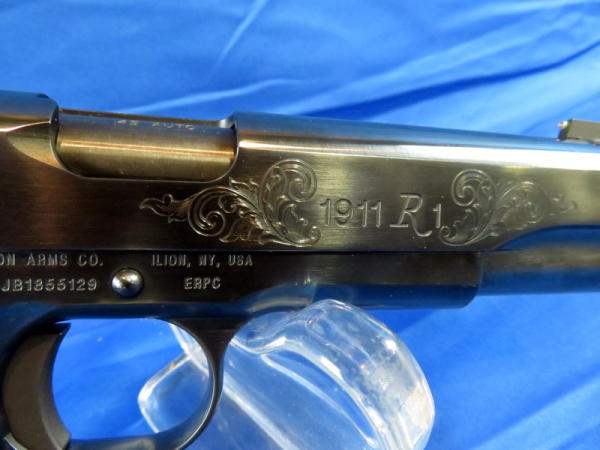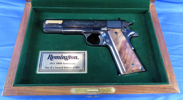 5" Bbl.; mint & unfired; beautiful factory engraved slide; wood grips; this is the 100th Anniversary edition and comes with a factory wood display case; 2-clips; only 1 of 500 produced; SN#JB1855129
