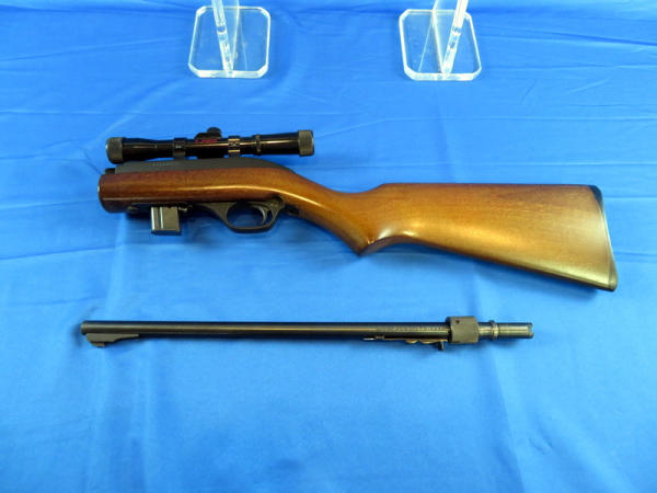 16" Bbl.; appears unfired; barrel unscrews for easy storage & carrying; Simmons compact 4x20 scope; factory zippered case; SN#11163327