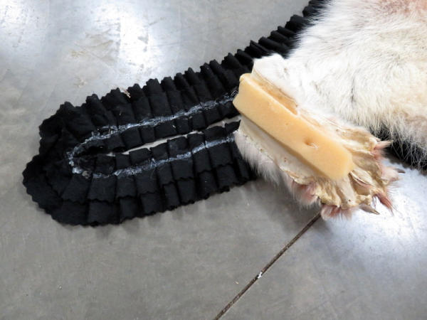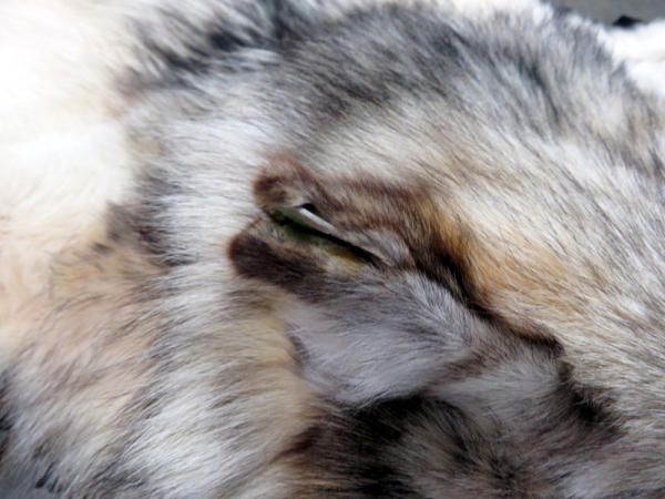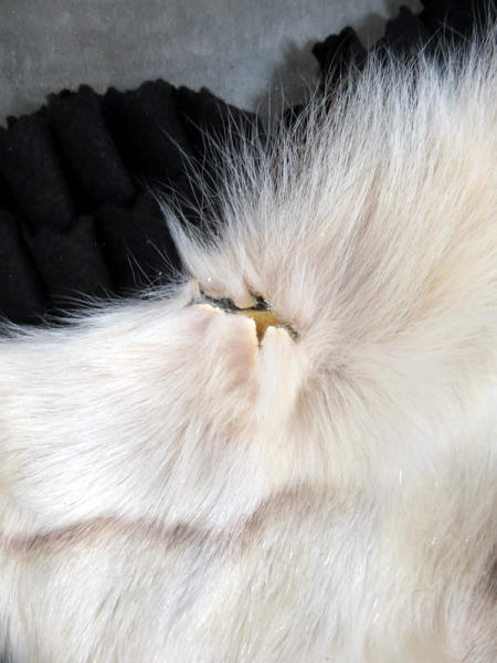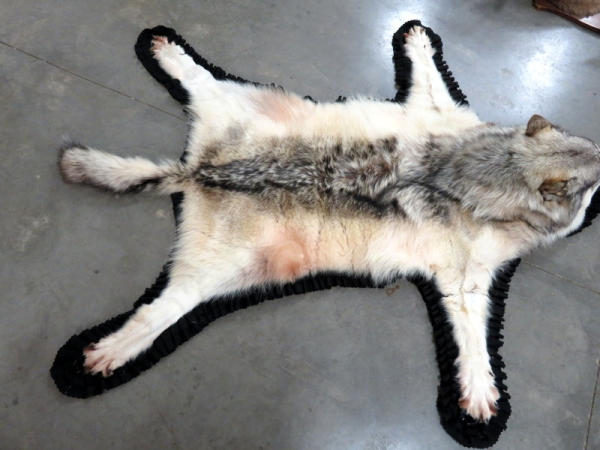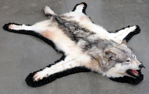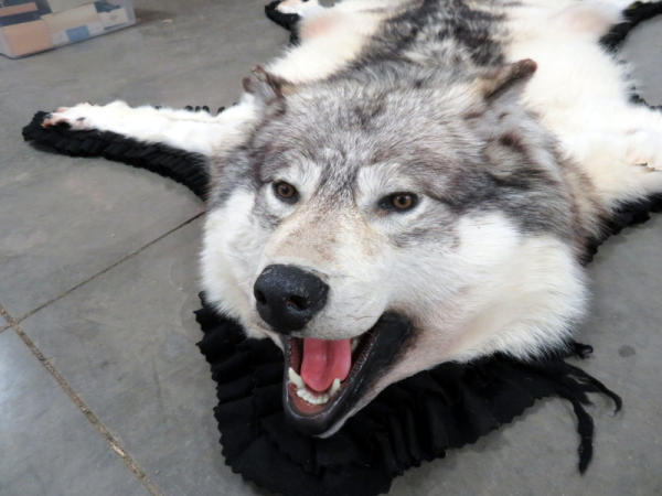 beautiful fur; professionally made; about 7' long from nose to tail; has some splitting on ears; needs to be reglued to rug on back two paws; nice piece, no papers
