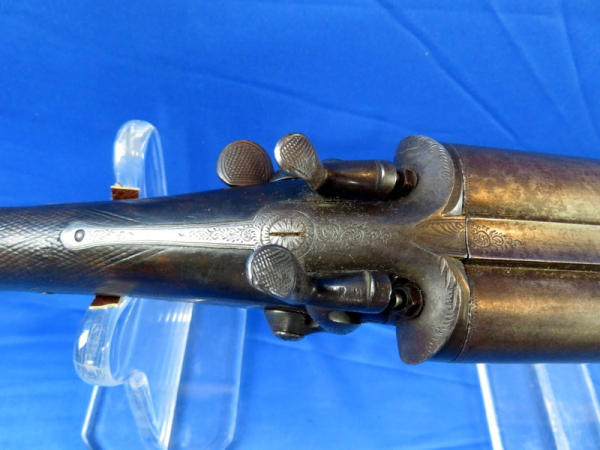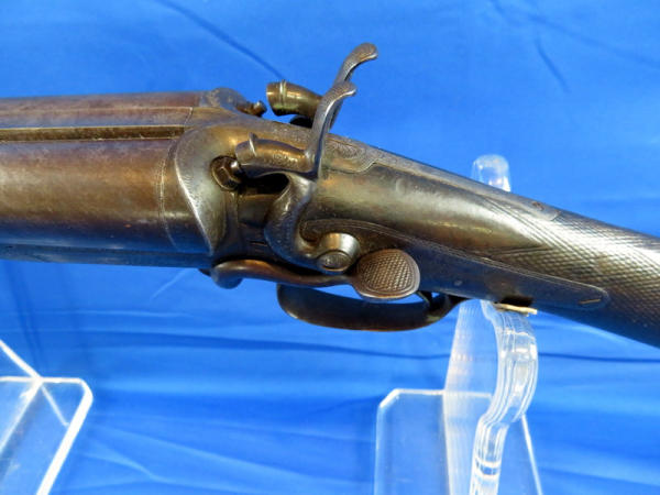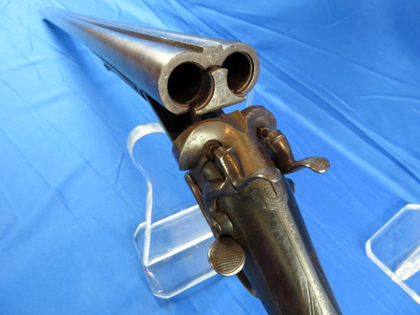 fancy engraving; 30" barrels; easy break action; barrels need cleaned; made in 1870s; two triggers; no SN#; no FFL transfer required