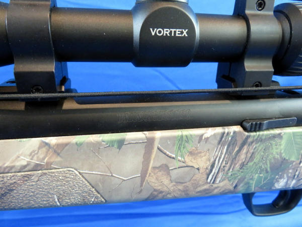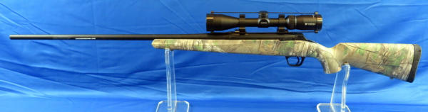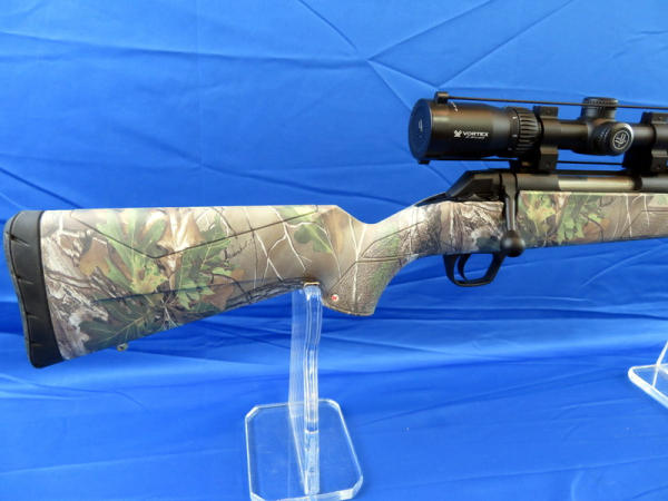marked w/RMEF logo on pistol grip; 26" Bbl.: RealTree Camo synthetic stock; Vortex 3-9x40 scope; mint & unfired; SN#357ZT00223