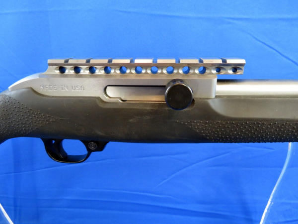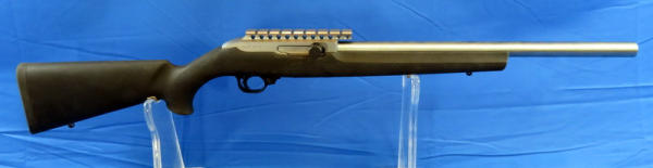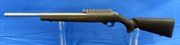 very nice and appears unfired; 18" heavy stainless barrel; black rubberized stock; Ruger receiver w/removable clip; nice gun! SN#073523