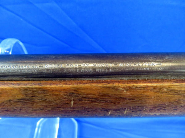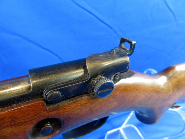 25" Bbl.; has rare factory rear peep sight; removable clip; wood is nice; bluing is thin; no SN#