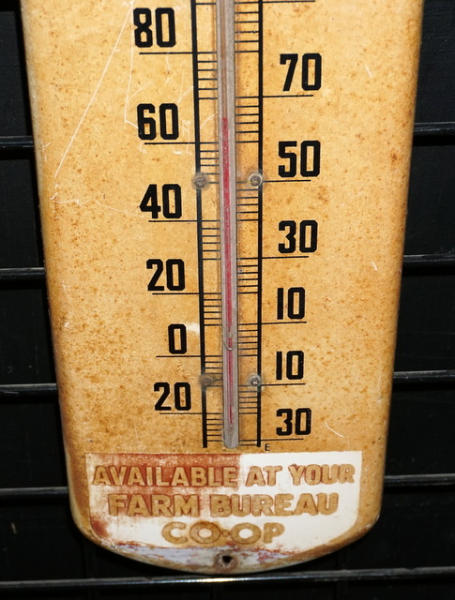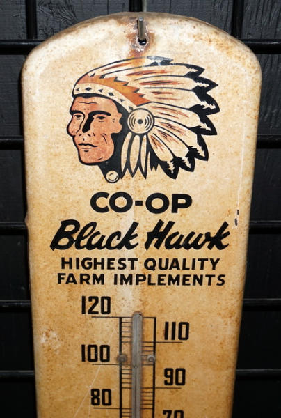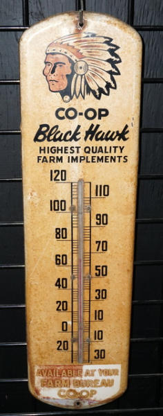 27" tall, has some surface rust stains and fading, not perfect, but hard to find piece for the Co-op collector