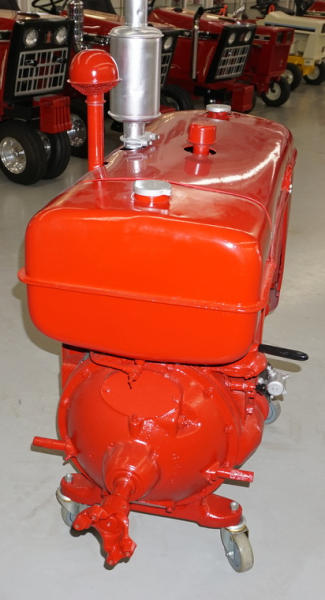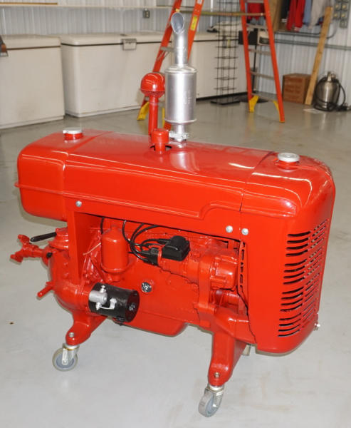 SN#10823, motor is loose, nicely repainted, mounted on casters, believe the same motor as an H, has electric start, no battery or cables included