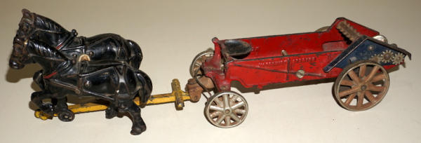 fairly heavy wear, paint is about 60%, the pin that holds the horses together is bent, overall I think it would clean up with a little work