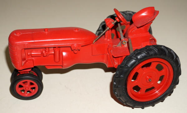 large 1/16th scale variation, plastic, has a piece missing out of the back of the seat and wind-up doesn't work; not the best condition, but a fairly rare toy for the IH collection