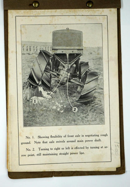 around 1921, about 20 pages, back of each page has notes written on it about the tractor, has some general wear, but another unique & early piece