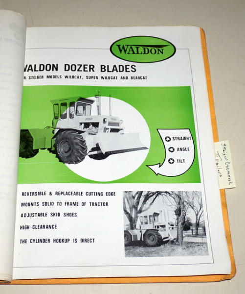 Wildcat, Super Wildcat, Bearcat, Cougar, & tiger, 49 printed pages; Walden Dozer Blades, also rare Steiger Gooseneck Trailer info--13 pages, neat piece