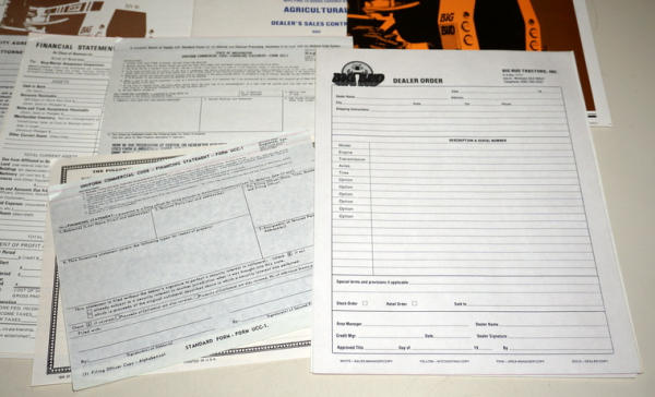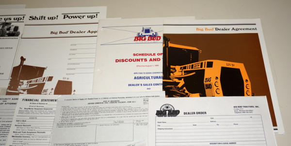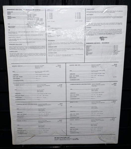 about 15"x18", shrink wrapped to protect, has specs on the tractors on the back side
