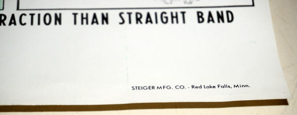 made by Steiger for any make of tractor, single sided single sheet, unique, marked Steiger--Red Lake Falls, MN on the bottom right corner; light wear