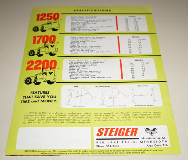 shows the 1250-1700 & 2200 tractors, 4pages, minor wear, nice piece