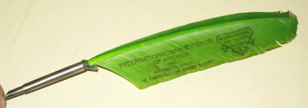 From Mankato, MN Corporate, 9" long, real feather with a fountain pen tip, never seen one before, some light wear, but very unique piece