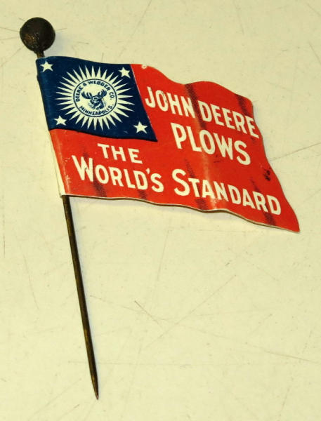 pin has a light crease in the celluloid, not broken, flag is about 1.5" long