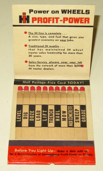 about 4x the size of a normal matchbook, has the 350 Utility Tractor Graphics, full and nice